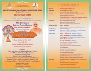 Under the divine spiritual guidance of Paramapoojya Sri Sri Yogananda Saraswati Swamiji, Sri Nityananda Yogashrama, Kondevoor Mutt (Bengaluru Committee) is set to organize a grand Sri Vishnu Sahasranama Havana on the auspicious occasion of the 75th birthday of our beloved Prime Minister Shri Narendra Modi.
